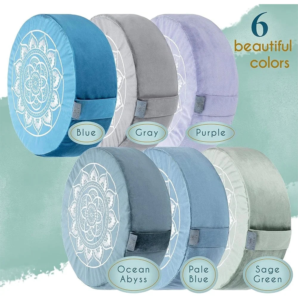 Cozy Meditation Floor Cushion: Create a peaceful spot with our meditation cushions.  Perfect for yoga and meditation, this thick cushion can also be a comfy seat for working at a low table. Supportive Posture: This yoga meditation cushion places you in a natural seated position, reducing stress on joints, easing back pain, and boosting circulation.  Our yoga pillows for sitting on floor encourages good posture whether you're doing yoga poses or floor seating.  Easily transport it to yoga class or your Zen Garden using the discreet handle.  It's a versatile piece of meditation furniture