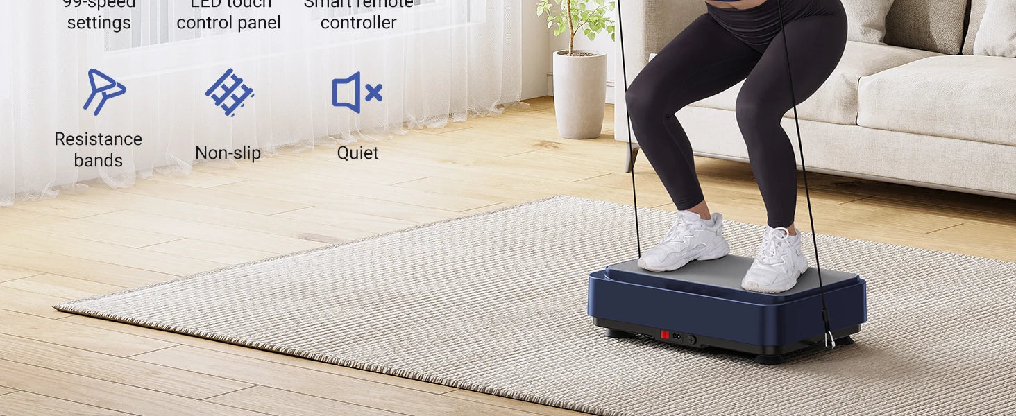 【More comfortable exercise】This vibration plate is equipped with a comfortable silicone cushion, which makes your feet more comfortable when exercising. The bottom of the vibration plate is also equipped with a non-slip chassis, which can effectively maintain the stability of the vibration plate and avoid the discomfort caused by shaking. In addition, the vibration plate is almost silent, so you can exercise at any time without worrying about disturbing your neighbors.